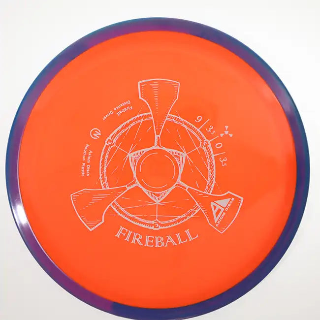 The Axiom Neutron Fireball is an overstable, high-speed driver designed to deliver controlled flights and reliable fade, even in challenging conditions. With flight numbers of 9 | 3.5 | 0 | 3.5, the Fireball offers minimal high-speed turn and a strong, late fade, making it a top choice for power throwers, headwind drives, and precision flex lines.