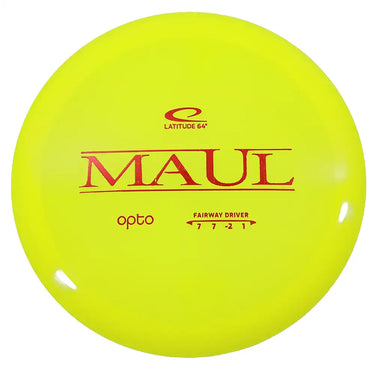 Add the Latitude 64 Opto Maul to your bag today from Dingerz Disc Golf Warehouse and experience the perfect blend of effortless glide, easy turn, and smooth control in a premium performance disc.