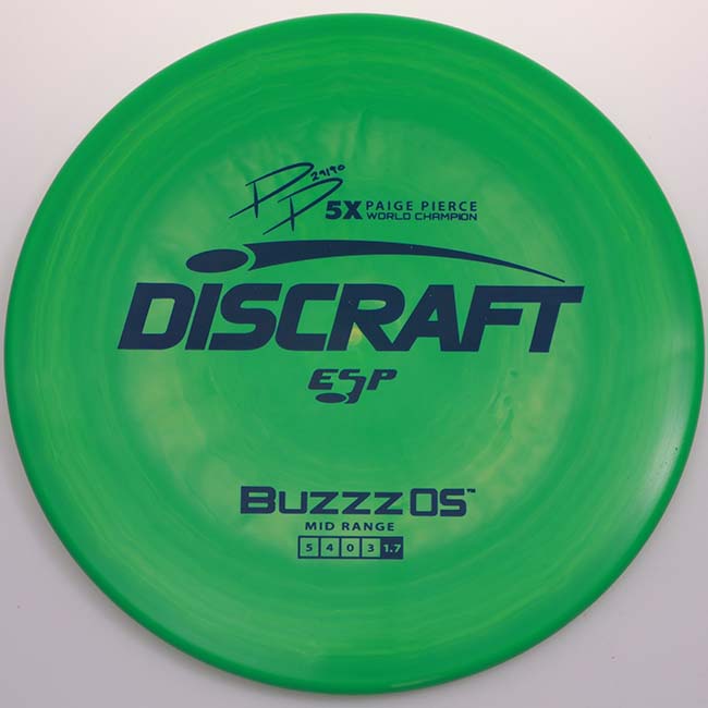 Add the Discraft Paige Pierce ESP Buzzz OS Signature Series to your bag today from Dingerz Disc Golf Warehouse and experience confident overstability, precision control, and tour-level performance in a trusted midrange disc.