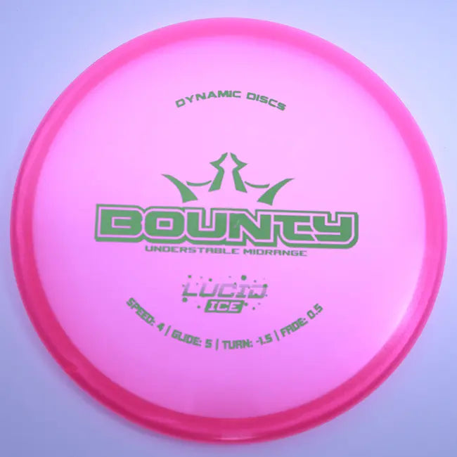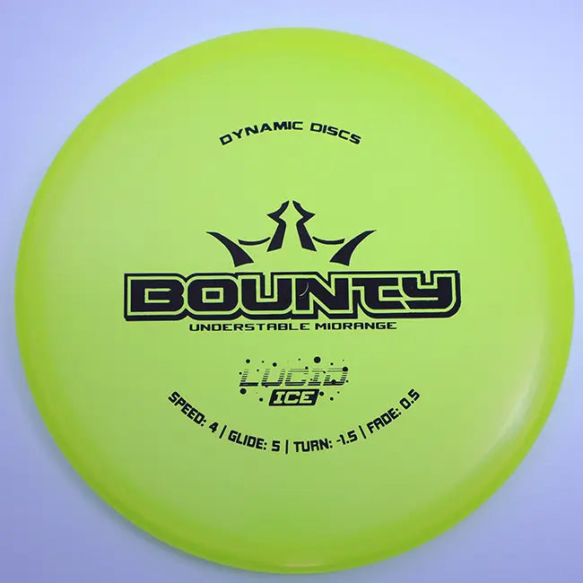 Add the Dynamic Discs Lucid Ice Bounty to your bag today from Dingerz Disc Golf Warehouse and experience the perfect blend of glide, control, and effortless understable performance in a premium midrange disc.