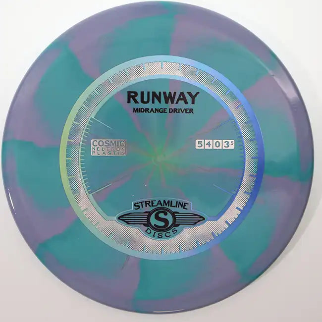 The Streamline Cosmic Neutron Runway is a dependable overstable midrange designed for precision, torque resistance, and consistent fade. Built to handle power and wind with confidence, the Runway excels at controlled forehand approaches, flat releases that finish hard, and utility midrange shots where reliability is critical. Cosmic Neutron plastic adds premium durability and grip along with striking multi-color swirl patterns, giving the Runway a confident feel and long-lasting performance. When you need a midrange that will not turn and always finishes predictably, the Runway delivers.