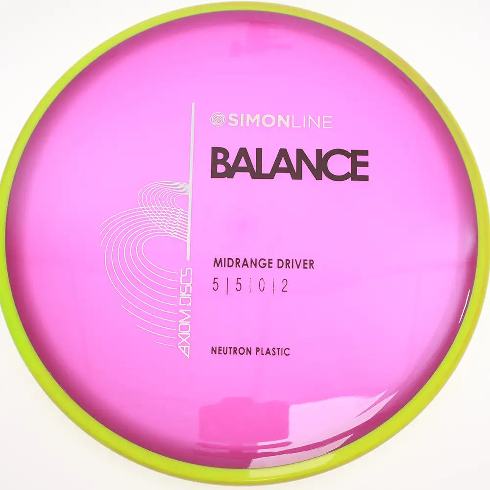 The Axiom Neutron Balance is the latest addition to the SimonLine series, offering a stable midrange disc designed for players seeking precision and versatility. With flight numbers of 5 | 5 | 0 | 2, the Balance provides a neutral flight path with a reliable fade, making it ideal for controlled approaches, straight shots, and gentle hyzer lines.