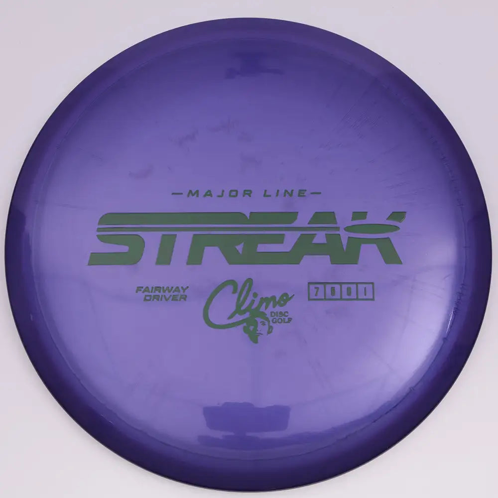 The Ken Climo Major Streak is a controllable fairway driver designed for smooth glide, straight flights, and dependable placement off the tee. With flight numbers of 7 | 5 | 0 | 1, the Streak delivers a neutral, line holding flight that allows players to shape accurate fairway drives with minimal fade. When thrown flat, the Streak tracks straight down the fairway before finishing with a gentle, predictable fade, making it an excellent choice for technical fairway shots and controlled placement drives.