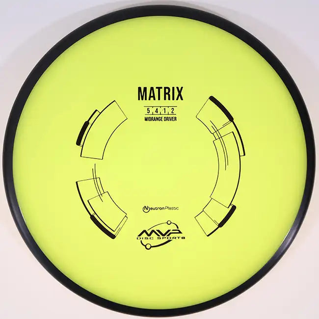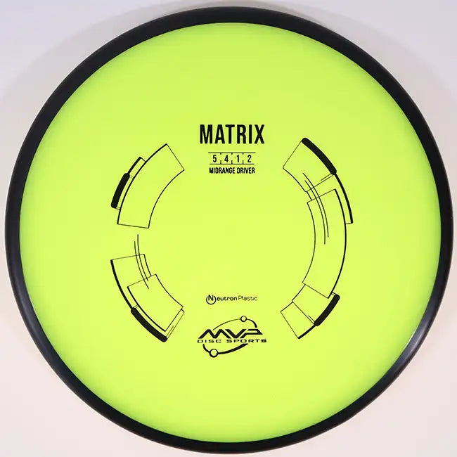 The MVP Neutron Matrix is a torque-resistant midrange designed for players who need consistency and control in all conditions. With flight numbers of 5 | 4 | -1 | 2, the Matrix flies straight with a subtle turn before finishing with a strong, dependable fade. This makes it an excellent choice for headwind approaches, power forehands, and accurate backhand drives that demand reliability.